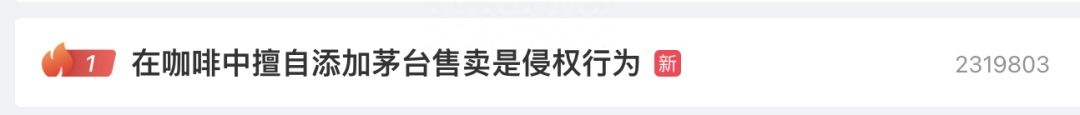 9月4日,#瑞幸回应喝茅台联名咖啡能否开车#、#瑞幸 真茅台#、#在咖啡中擅自添加茅台售卖是侵权行为#登上热搜,不少年轻人戏称,“人生中的第一杯茅台是瑞幸给的”。