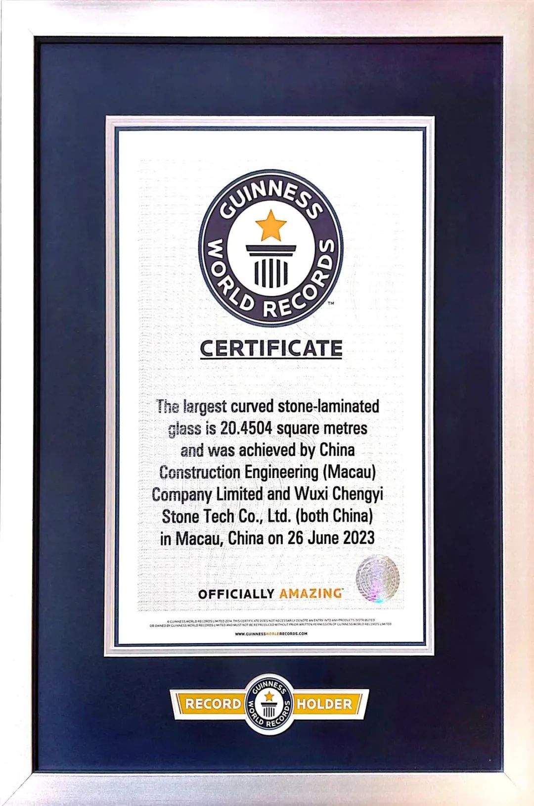 吉尼斯世界纪录官方认证官颁奖时表示,这次挑战“最大曲面热熔复合石材玻璃”吉尼斯世界纪录,是一次科技和制造的极限挑战。中国建筑国际凭“玻璃黑科技”创吉尼斯世界纪录,充分展现了以科技创新为战略引领,持续超越、大胆创新的企业精神。