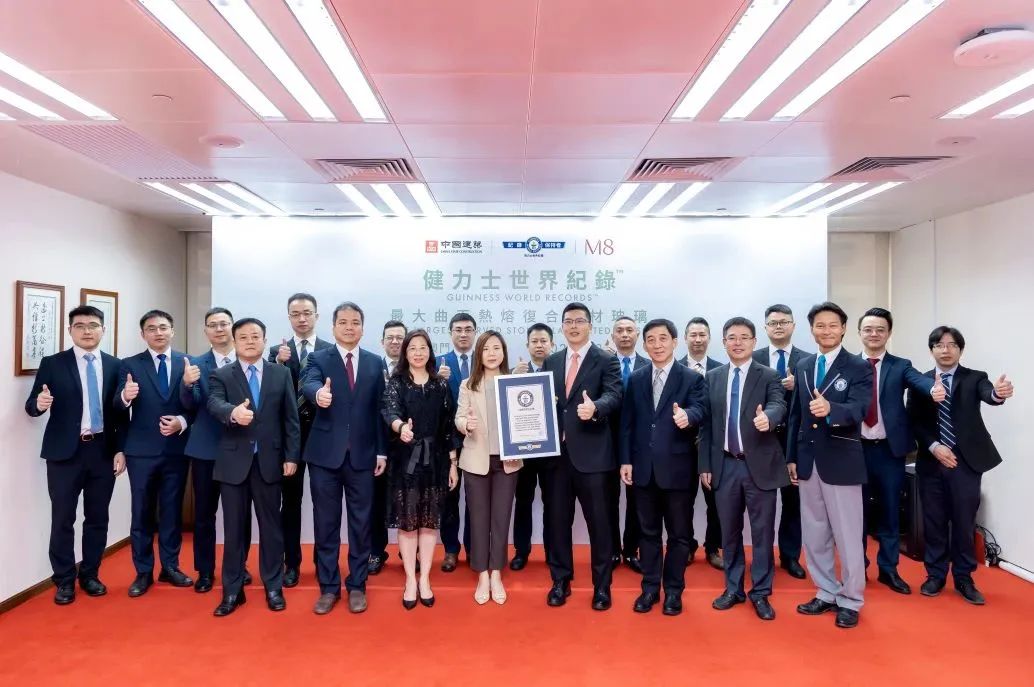 近日,中国建筑国际集团旗下中国建筑工程(澳门)有限公司(以下简称“中建澳门”或“公司”)投资建设的澳门M8项目外墙材料——曲面热熔复合石材玻璃,以20.45平方米的单体面积创造了“最大曲面热熔复合石材玻璃”吉尼斯世界纪录。