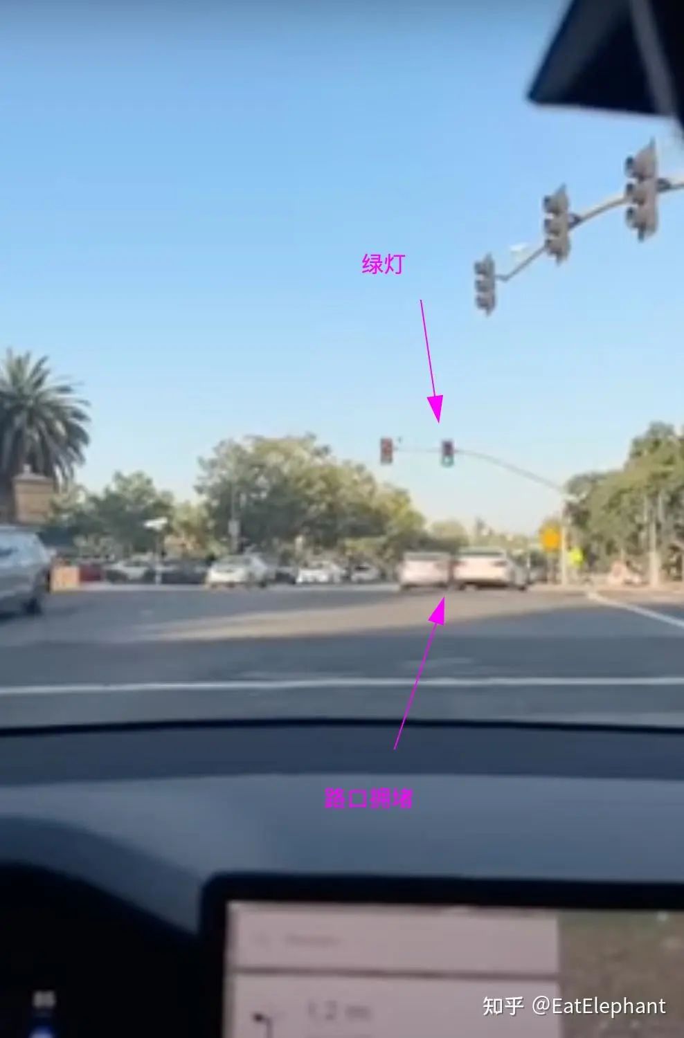 当时,想要直行的车辆在路口已经等了很久红灯,而在对面信号灯刚刚转为左转状态时,Model S竟突然跟着启动。