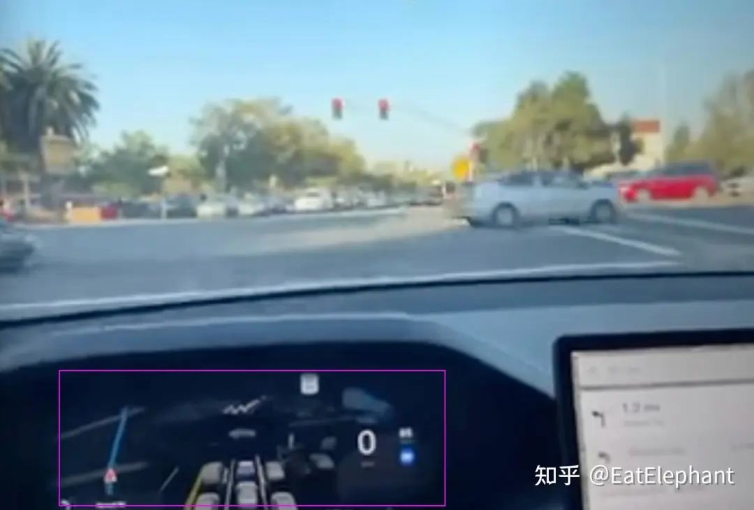 虽然上面说了,我更加关注的是V12相比现有FSD是否在基础功能上存在性能回退,但是在这次Demo中我们也看到了很多V12的闪光点。这次的一个大家容易忽略的亮点其实就发生在老马第19min红绿灯接管之前。当时的场景是这样的,直行的绿灯亮起但是前方路口拥堵,这时比较合理的驾驶决策是不要进入路口,等待目标路口空间出现再选择通过路口,而FSD V12也正是这样做(不要纠结国内国情,实际上我国的交规也是这样建议的,虽然很少有人按照执行),不过这也导致了这次绿灯V12没能通行,一直到绿灯变红,再下一次左转绿灯亮起的时候V12出现了误判,原因是V12目前似乎并不直接检测红绿灯的状态(可视化界面中好像不再出现红绿灯检测结果),而是综合参考了红绿灯情况和周围其他这辆行为来判断是否应该通行,所以当有红灯变绿,且周围左转车辆开始移动的时候,V12产生了错误判断,认为直行也已经可以通行,造成接管。