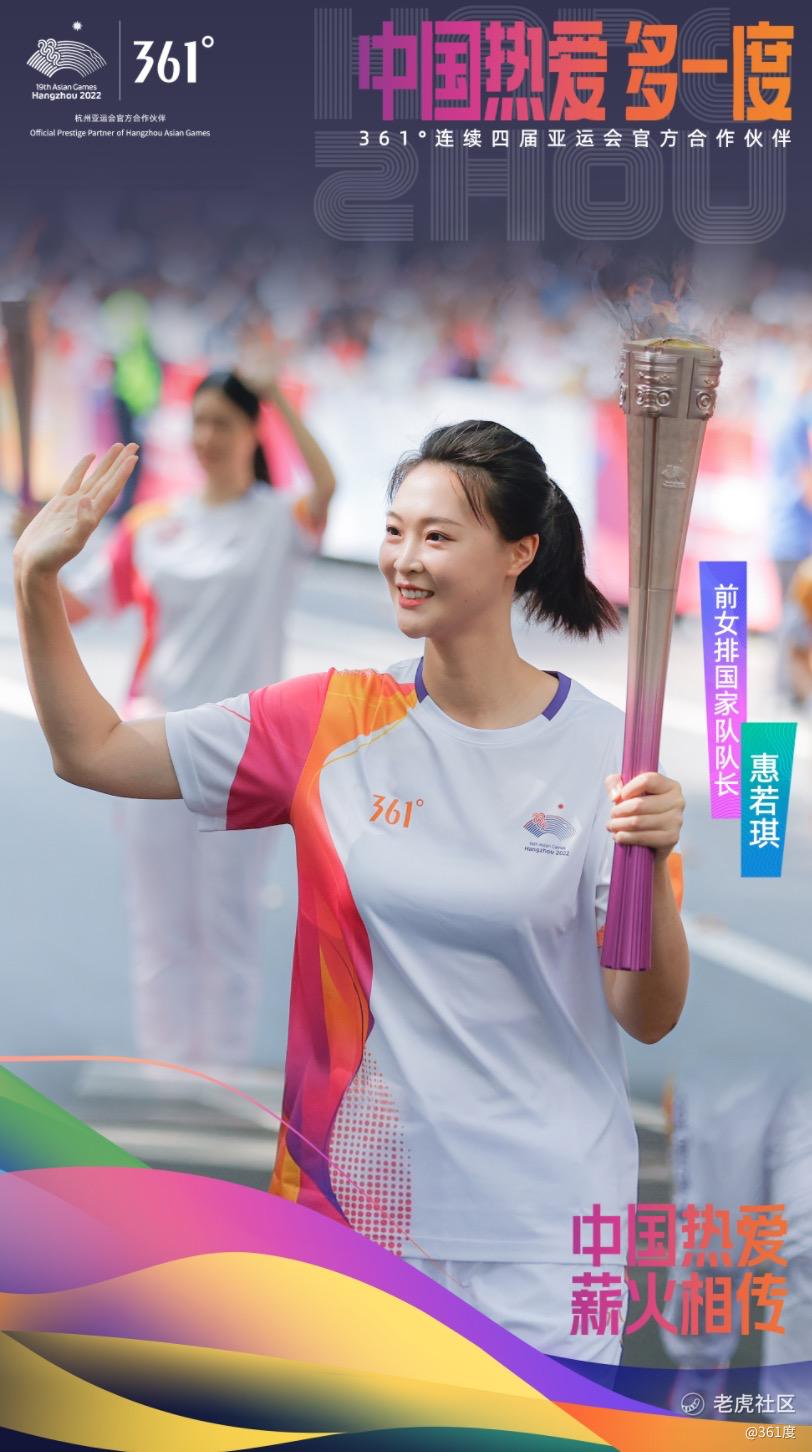 体育精神不息,热爱精神不负。热爱,是361°的精神,也是每一位火炬手的信念。他们的热忱与坚韧,让世界领略到中国蓬勃向上的体育文化,体会到每个中国人都积极参与亚运、支持亚运,书写着“中国热爱 薪火相传”。361°也将秉承热爱的初心,在持续创新和突破中,以领先的中国体育用品品牌形象,向全世界传递中国民族企业新势能。