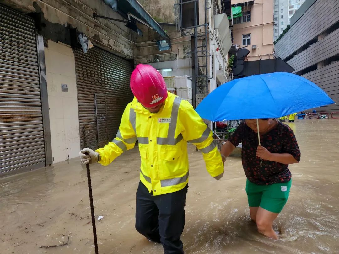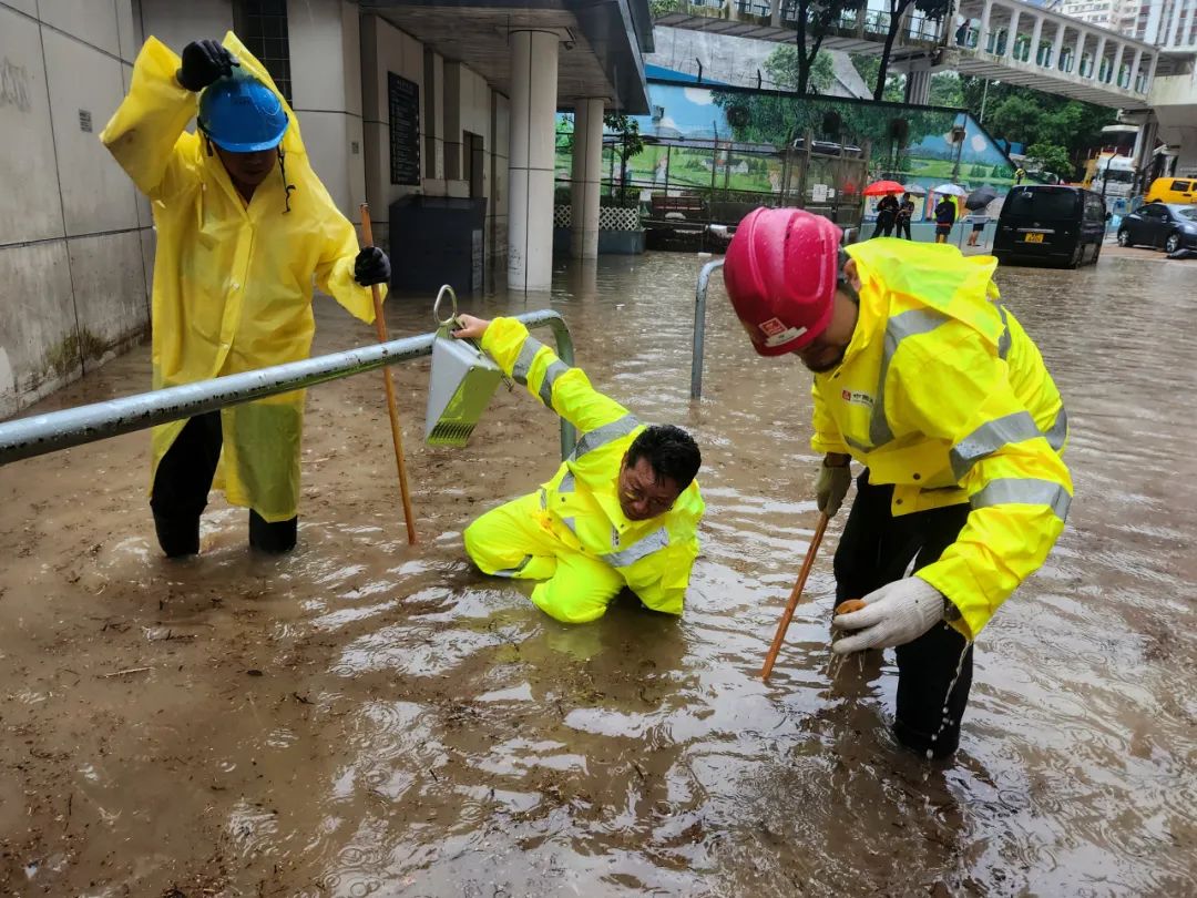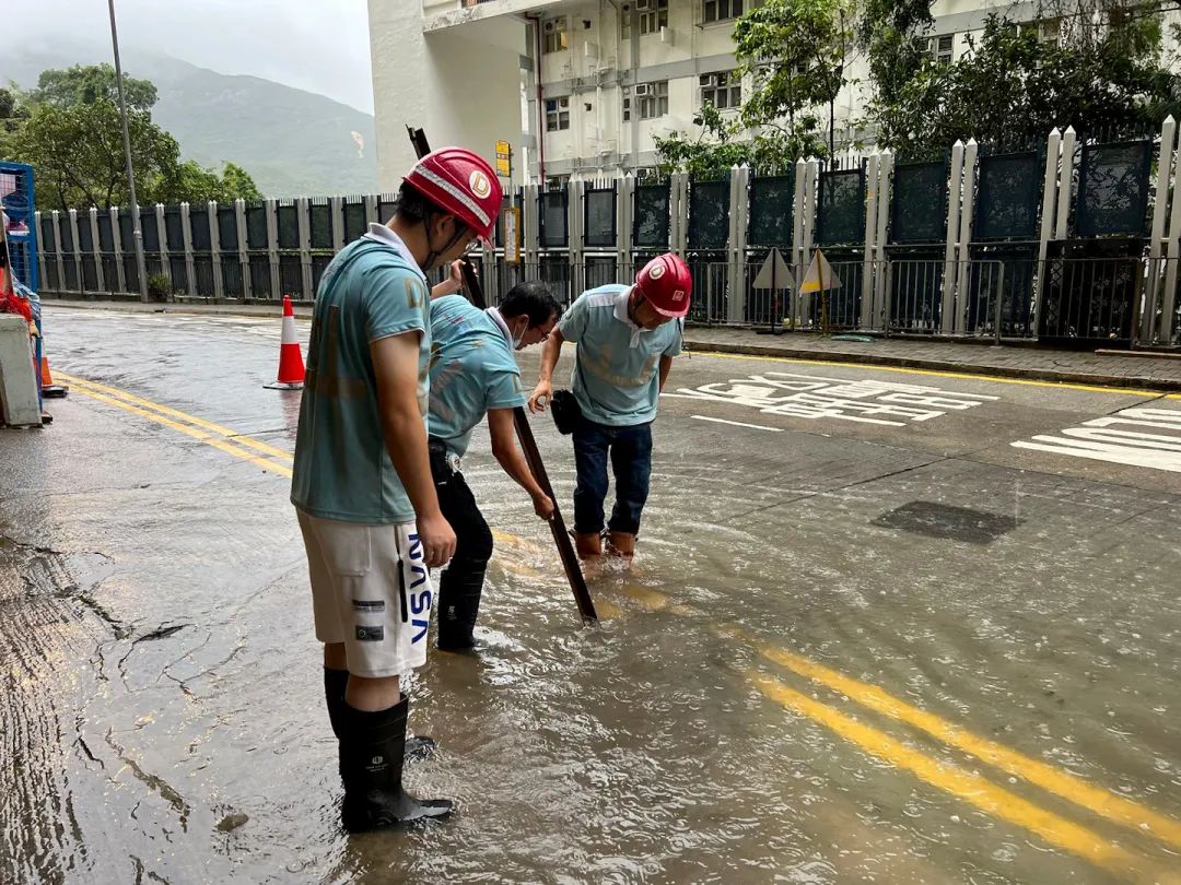 黑色暴雨突降香港,港岛、九龙、新界多地遭受水浸,交通受阻,部分地区积水倒灌,危及社区安全。中海集团旗下中国建筑工程(香港)有限公司收到香港特区政府多个部门的请求支援,组织公司义工前往现场。