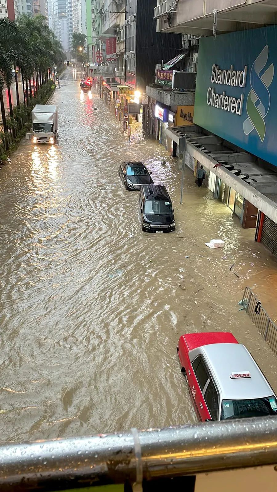 香港天文台在9月7日下午11时05分发出今年第一个黑色暴雨警告信号,其后雨势加剧,天文台总部录得158.1毫米的一小时雨量,是自1884年有记录以来的最高纪录。