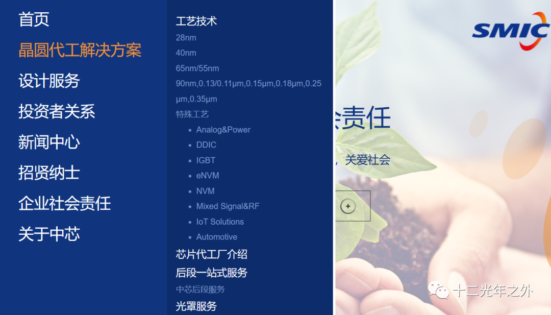 在SMIC的官网上,可以看到目前芯片代工方案里只有28nm的工艺!