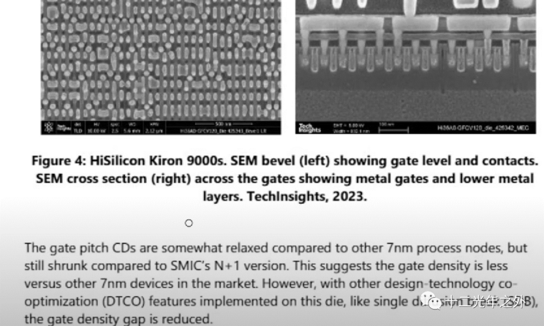 TechInsight的报告中通过对SMIC的7nm 麒麟9000s芯片进行测量,发现它比其它厂商生产的7nm芯片在间距上要稍微稀疏一些,但要比SMIC 的N+1(14nm工艺)技术生产的芯片要紧密一些,说明N+2确实工艺改进升级了!