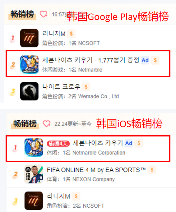 9月6日,《放置七骑士(Seven Knights Idle Adventure)》正式上线,陆续登上韩国iOS畅销榜第1、Google Play畅销榜第2的位置,并进入日本、泰国、中国台湾等海外市场免费榜TOP5。根据第三方数据:游戏发布5天流水近5000万,单日流水达1400万左右,且最近几天这款游戏的日收入排名全球TOP30。