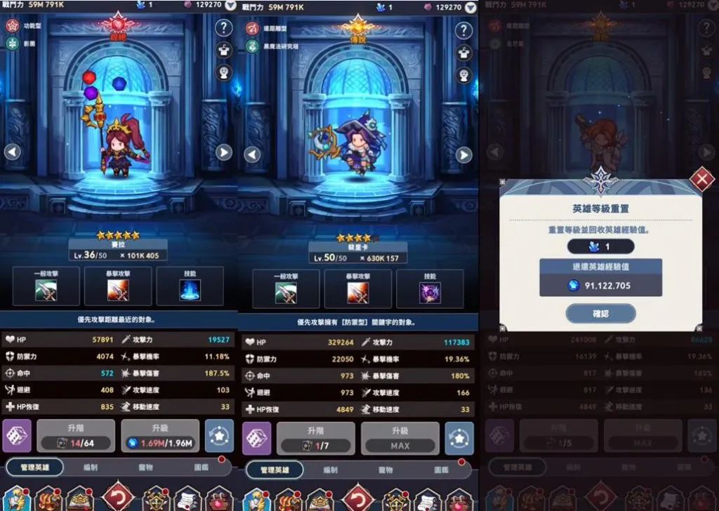 角色培养上,英雄分为史实、传奇、稀有等不同等级,且不外乎熟悉的升级、升星等养成玩法。与之相对,游戏可以返还养成资源,以服务于玩家抽到的更稀有角色,节约了养成时间、精力,真正确保“轻松”体验。