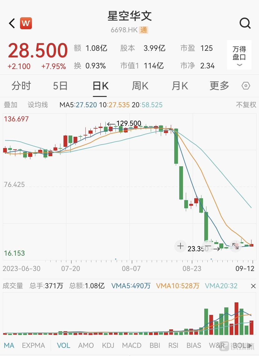 9月12日,星空华文(06698.HK)股价出现大涨,早盘一度涨近20%,与此前的大跌行情相差甚远,不免引人注目。