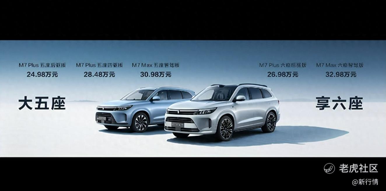 M7 Plus五座后驱版24.98万元、M7 Plus五座四驱版28.48万元、M7 Max五座智驾版30.98万元;M7 Plus六座后驱版26.98万元,M7 Max六座智驾版32.98万元。