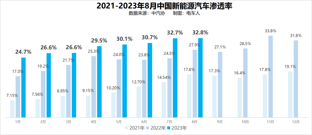 8月新能源汽车渗透率达32.8%;1-8月累计渗透率29.5%。