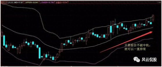 5、当K线一直处于中轨线上方,并和中轨线一起向上运动时,表明股价处于强势上涨过程中,只要K线不跌破中轨线,投资者坚决一路持股。