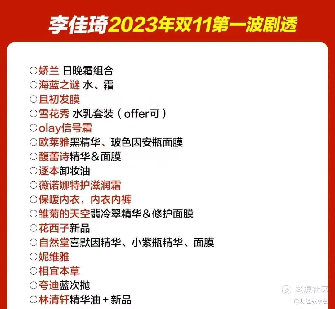 在小红书上,有用户根据李佳琦此前的“剧透”,整理出了李佳琦今年双11要带货的部分品牌列表,珀莱雅、丝塔芙、欧舒丹、理肤泉、DIOR、佰草集、雅诗兰黛、自然堂等各种美妆品牌皆在内。