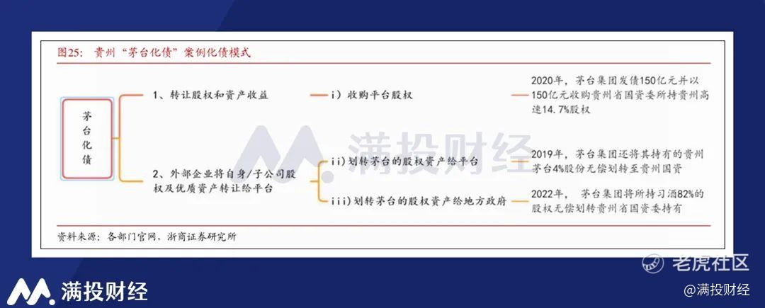 贵州政府曾在2019年12月推动过“茅台化债”,通过将持有的贵州茅台股份转化至贵州省国资运营公司来开启茅台化债的道路。同样的操作还有低息发债收购贵州高速、购买城投债的方式化解贵州债务。若不考虑国有资产流失的背景,这或许是未来政府偿债的手段之一。