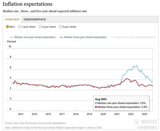 我们知道,二手车和卡车的价格上涨已经从疫情后的高点下降,但住房成本仍然高得令人烦恼。纽约联邦储备银行周一发布了其消费者预期调查报告,鲍威尔表示在评估通货膨胀预期时会关注该报告。好消息是,三年期预期持续收窄,最新一次调查显示只有2.8%。一年期预期上涨了0.1%,达到3.6%,但分析师认为这是更好的消息。