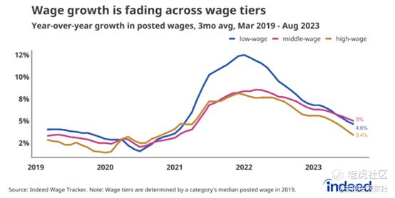 此外,较低工资水平的工人仍然在实现最高的工资增长率,因为当经济放缓时,他们往往在财务上受到最大的打击。最高工资水平的人拥有房屋资产和储蓄来维持他们的消费模式。