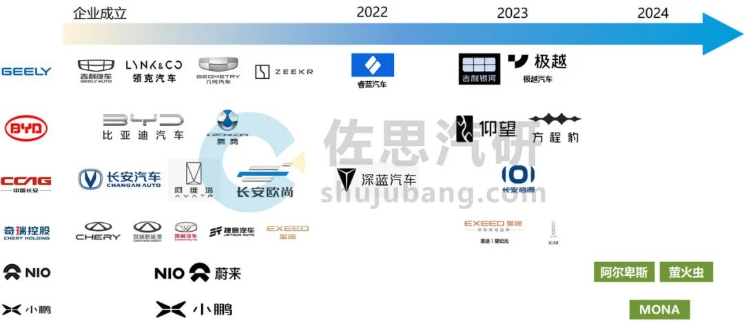 在智能化赛道,曾在“多生孩子好打架”上折戟的主机厂例如吉利、长城、奇瑞等,重回多品牌战略。此外,一直推行单品牌战略的比亚迪、新势力品牌蔚来等,也走上了多品牌布局,希望借助全新品牌树立高端化、智能化的产品形象,打造更加丰富的品牌矩阵。