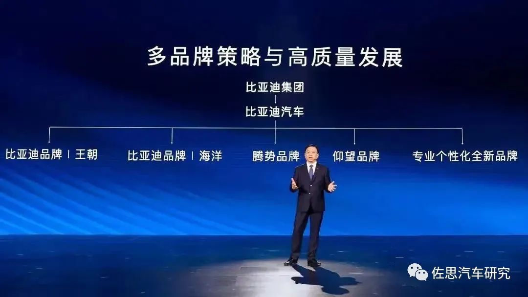 2023年,比亚迪汽车陆续推出仰望、方程豹品牌,与比亚迪品牌(王朝和海洋)、腾势品牌形成比亚迪四大品牌矩阵,覆盖从家用到豪华、从大众到个性化,满足全场景用车需求。