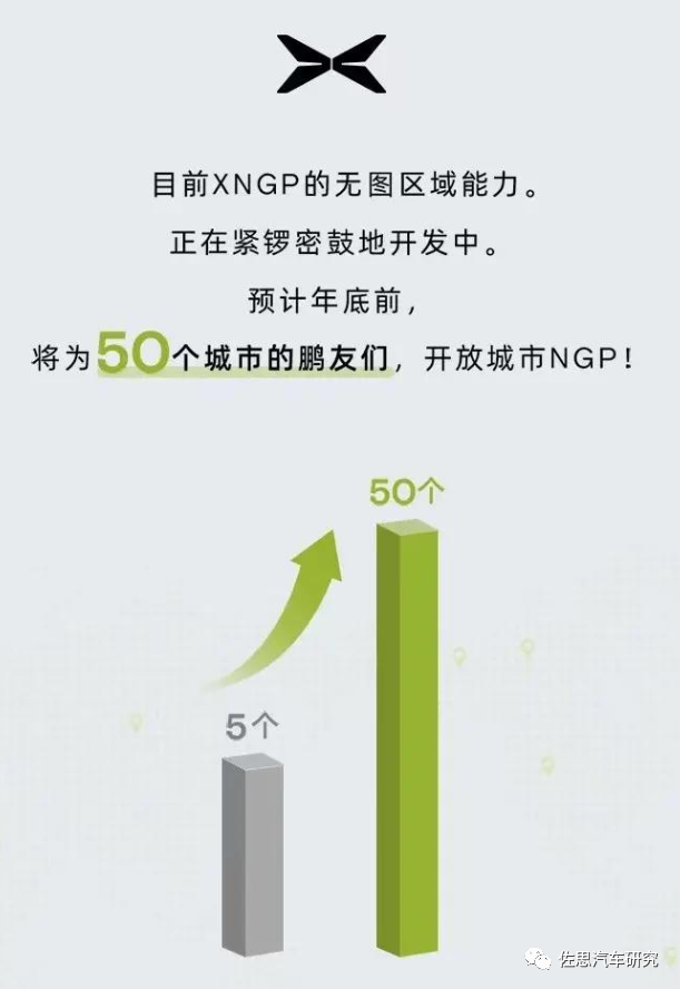 小鹏汽车城市NGP在有高精地图的情况下在5个城市开放,其计划年底前在50座城市推出XNGP辅助驾驶技术,并正在开发XNGP的无图区域能力。