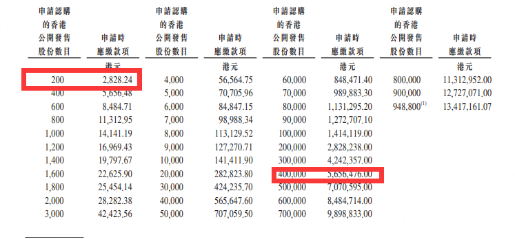 乙组门槛为40万股,申购所需资金约5656476港元。