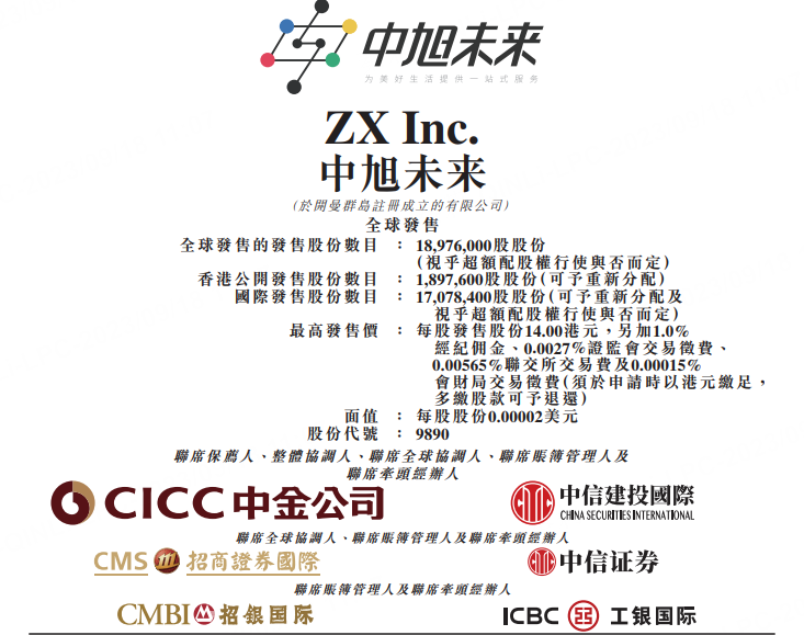 新股招股 | 中旭未来今起招股,入场费2828.24港元