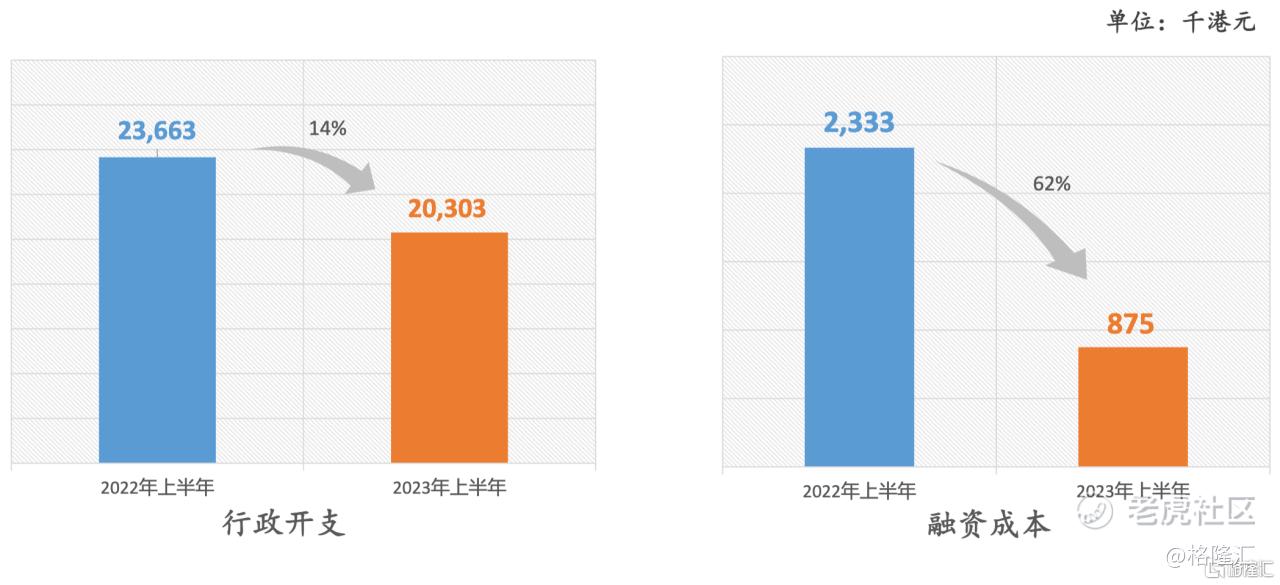 公司转型成功显著优化了成本结构,上半年主营成本下降40%至4627万港元。行政费用和财务费用大幅下降,其中行政开支同比下降14%至2030.3万港元。融资成本从去年同期233万港元下降到今年上半年87. 5万港元。