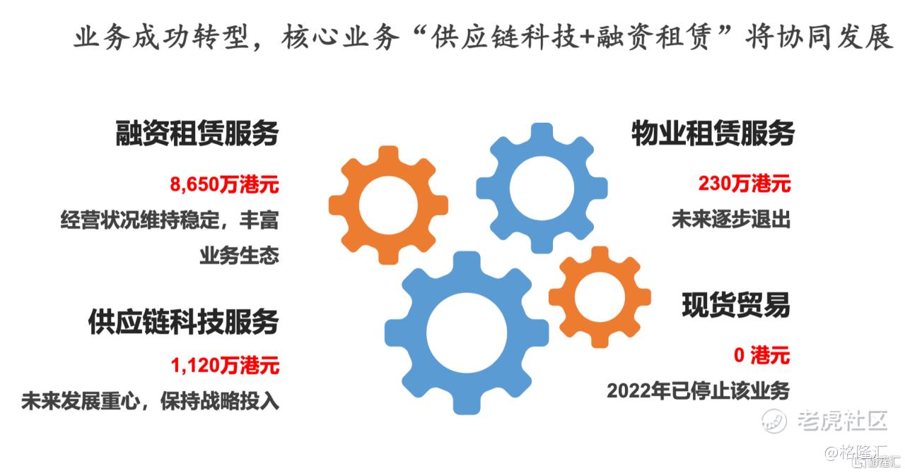 一是协同发展下,采取“两进两退”规划。供应链科技服务作为未来发展重心,做持续战略性的投入;融资租赁服务稳健,继续丰富业务生态;物业租赁服务,逐步有序地退出;现货贸易业务,在2022年下半年已经全面停止。