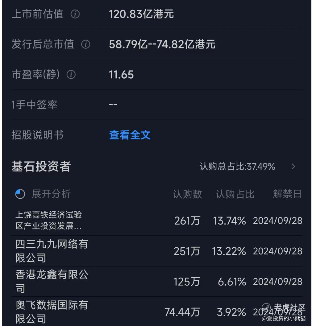 中旭未来曾于2021年5月份融资5亿元人民币,投后估值达到100亿元人民币。合计120亿hkd,结果这次募资才2.09亿港元-2.66亿港元,就这一点点,咋一看发行后总市值58.79亿-74.82亿。