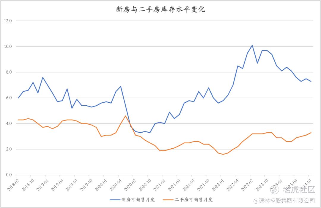 房贷利率的飙升促成了美国新房库存与二手房库存明显分化的局面。目前美国新房库存较为充足,但二手房库存严重偏低。截至2023年7月,美国新房可供销售月度为7.3个月,而二手房库存可供销售月度仅为3.1个月,处于历史低位。