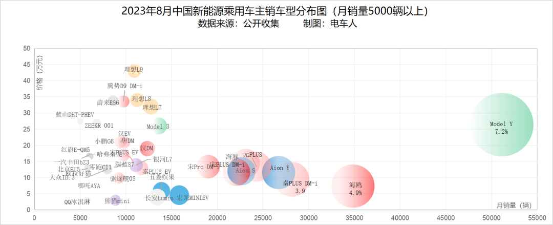 8月份,共有39款车型月销量5000辆以上,较7月增加3款;