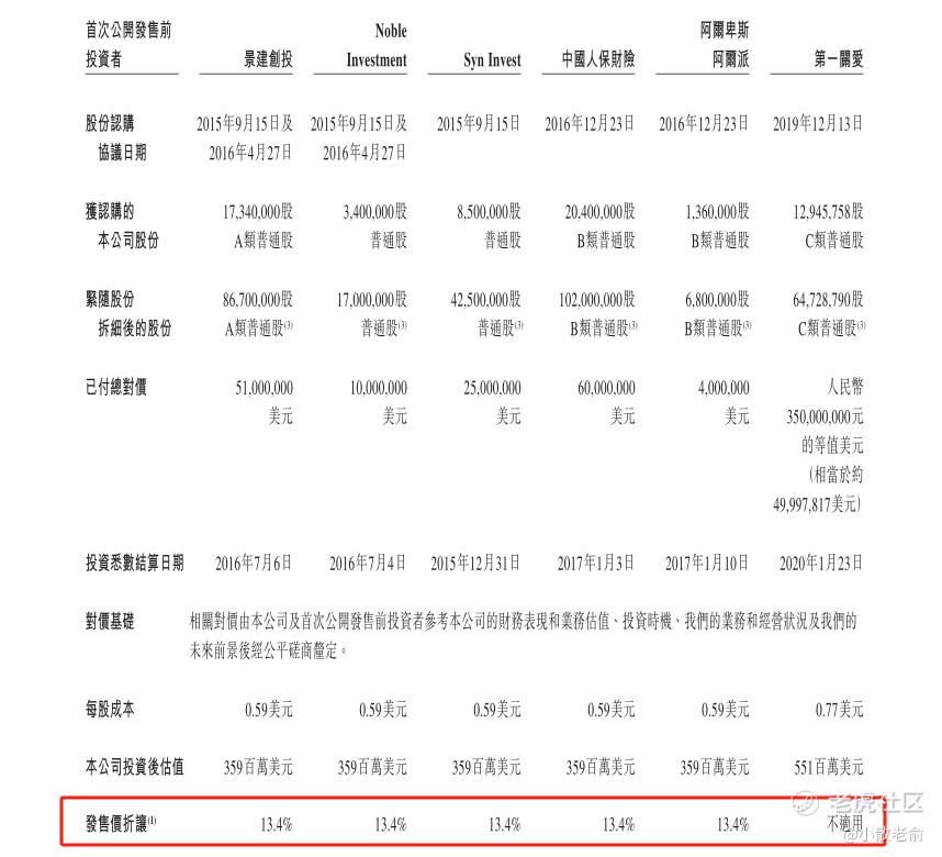 公司获得过两次公开发售前的投资,大部分股东的成本价较目前招股价中位数折让13.4%,也就说公开发售前投资者股东们的每股成本价比目前招股价也便宜不了多少,个人认为本次发行不算贵。