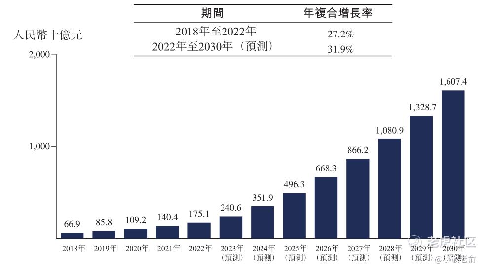 中国数字医疗服务市场近年来发展迅猛。其涵盖了四个关键组成部分:数字医疗基础设施、数字医疗服务、数字消费医疗健康产品及服务、数字健康管理。根据弗若斯特沙利文的资料,2022年中国数字医疗服务市场的规模达人民币1,751亿元,预计到2030年将进一步增至人民币16,074亿元,年复合增长率为31.9%。