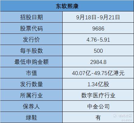 公司9月18日开始招股,招股价是4.76~5.91港元,每手股数500股,最低申购金额2984.8港元,市值40.07亿~49.75亿港元,发行数量1.34亿股,属于数字医疗行业,有绿鞋。