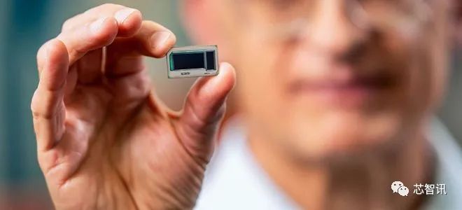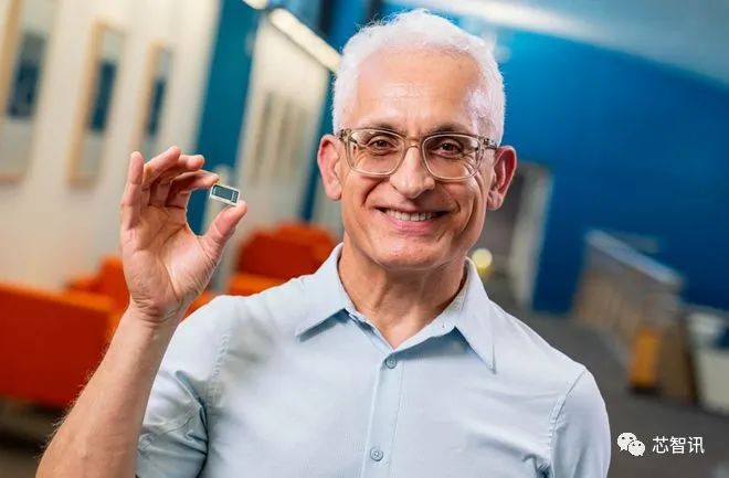 △英特尔公司业务VP和基板技术开发主管Hamid Azimi拿着玻璃基板测试芯片(图片来源:英特尔)