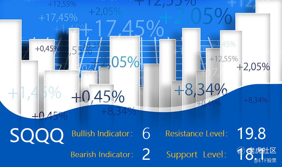 SQQQ短线支持位18.1,盘中跌穿18.1,则有机会下试17.6;SQQQ短线阻力位19.8,盘中升穿19.8,则上望21.0。