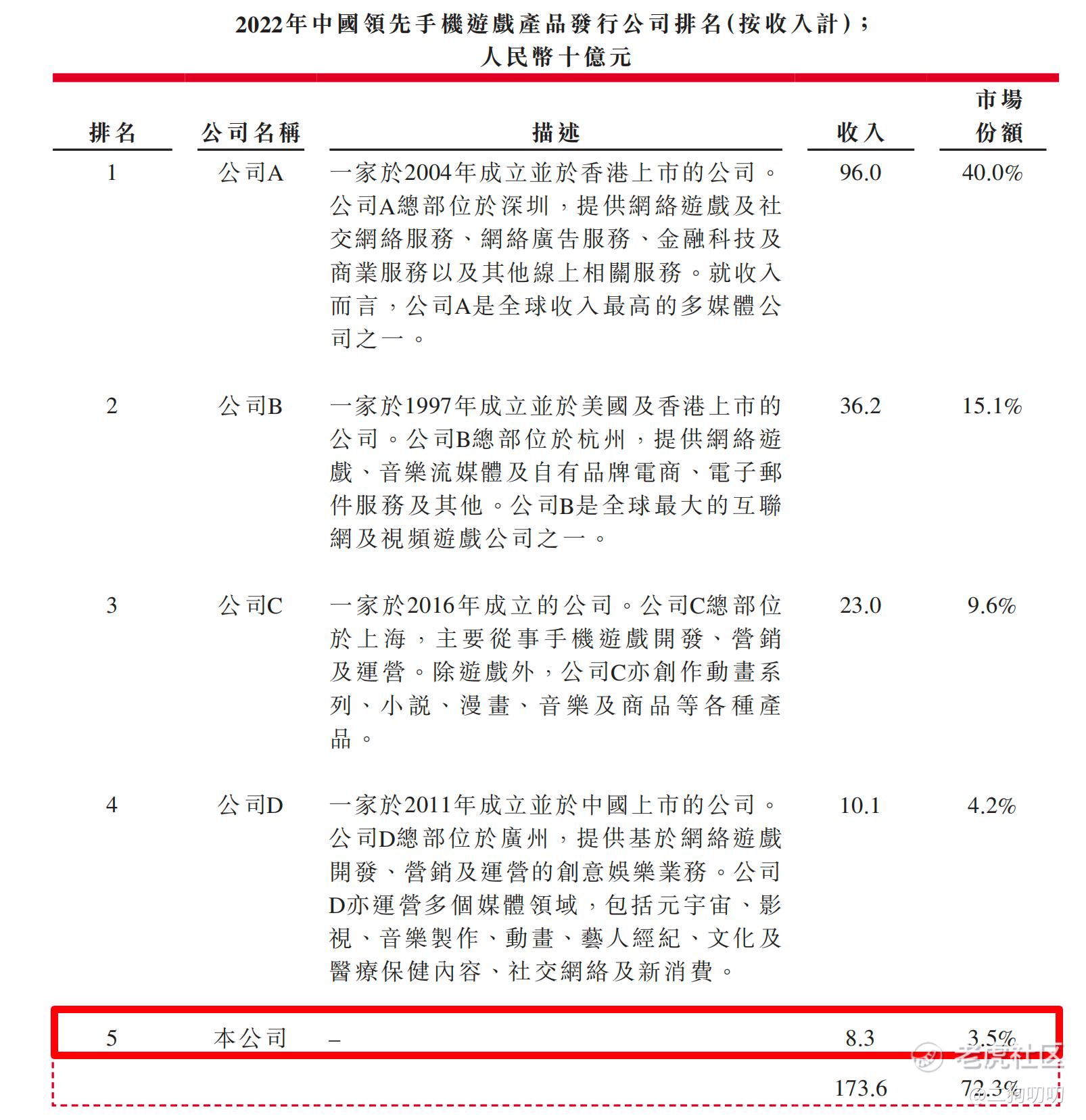 按照2022年营收计,中旭未来以83亿营收,成为国内第五大手机游戏发行公司,其市场份额为3.5%,其中排名第1的公司以960亿营收占据了40%的市场份额。