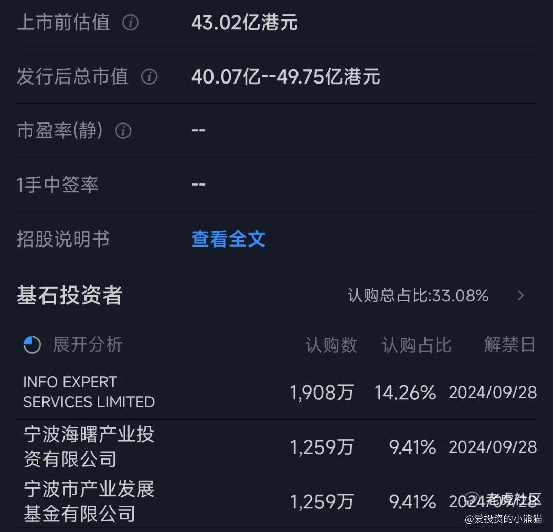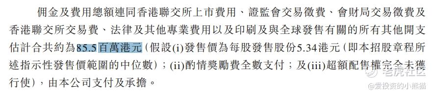 然后这个票招股书上按发售价的中位数5.34港元计算,公开的上市所有开支总额约为8550万港元,募资额约7.15亿港元,占比约11.96%,开支相比募资额算是一般了。