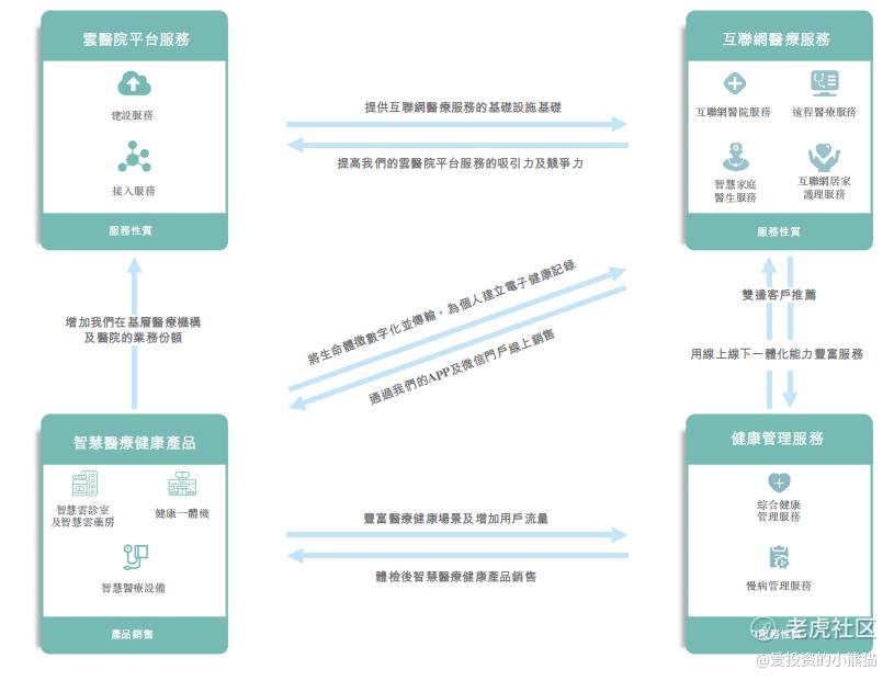 公司业务模式主要分为云医院平台服务、智慧医疗健康产品、互联网医疗服务、健康管理服务四个分部。
