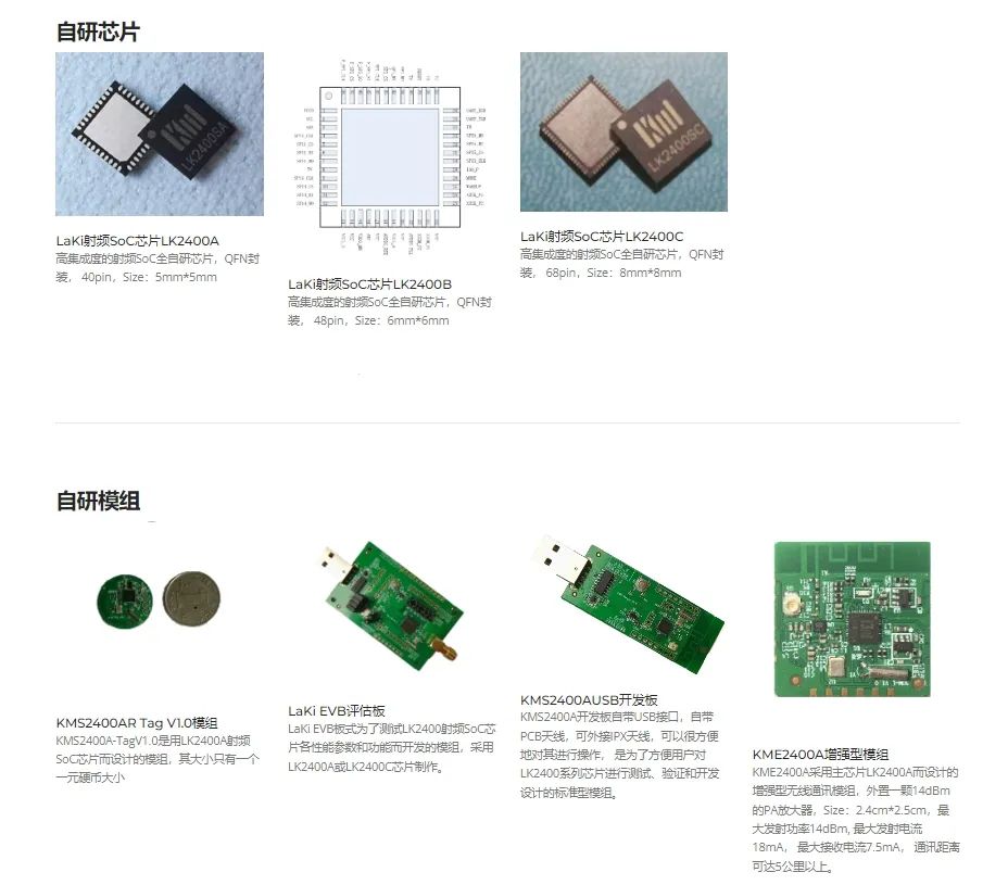 公司用5年多时间研发而成了全新无线通讯技术LaKi,它的名字来源于Last Kilometer IoT Coverage,即“物联网的最后一公里覆盖”。该产品完全根据物联网的数据特点和通讯特点全新研发,包含了Mac层的LaKiplus的通讯协议,以及物理层的LK 2400系列射频Soc芯片。它的性能可用实测数据说明,5.9毫安的发射电流就可以实现1.5公里距离以上的通讯,并且空口速率可达到1M bps,这个性能应该是独步全球的。产品目前主要应用在两大方向,一个是物联网方向,在这个方向中很多领域已经有多款应用落地,包括智慧畜牧业、智慧农业、仓储物流,以及智慧铁路等等;另外一个应用方向就是长距离低功耗的语音解决方案。也用实际数据来说明,200 毫瓦的发射电流可以实现五公里以上全双工清晰的语音通讯。