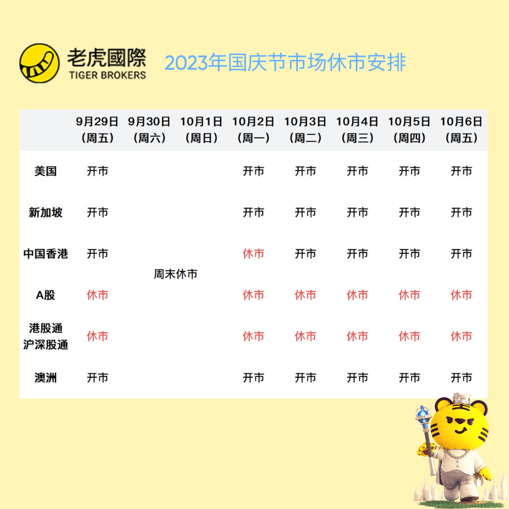 中国国庆节到来,香港市场和A股市场的交易活动将受到影响。请留意股市休市时间,并提前安排好您的投资计划。具体休市安排如下: