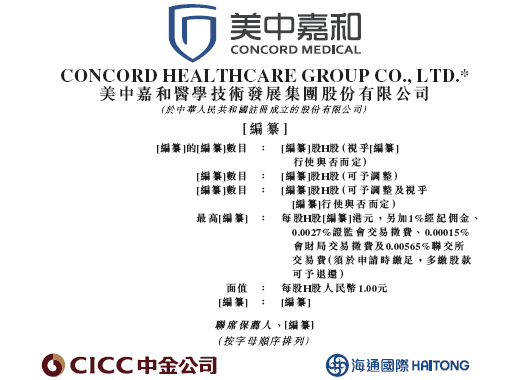 2023年9月19日,来自北京的美中嘉和医学技术发展集团股份有限公司CONCORD HEALTHCARE GROUP CO., LTD.(下称“美中嘉和”)再次向港交所递交招股书,拟在香港主板挂牌上市。这是继其于2022年5月31日、2023年1月30日递表失效后的再一次申请。美中嘉和,于2023年02月12日获得中国证监会核准发行境外上市外资股(“大路条”,有效期1年),2023年07月19日获中国证监会境内未上市股份“全流通”备案通知书。
