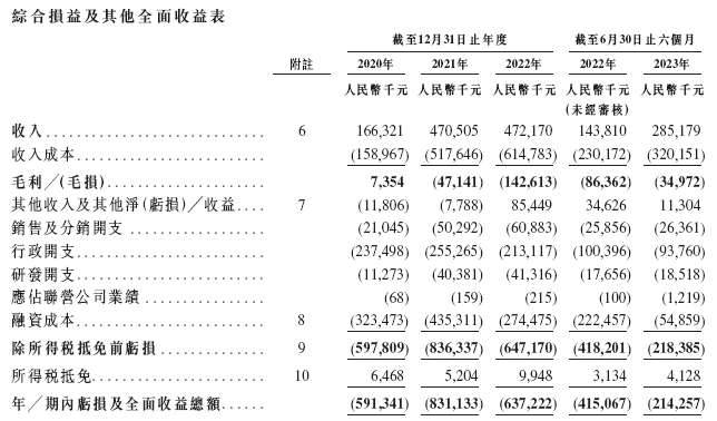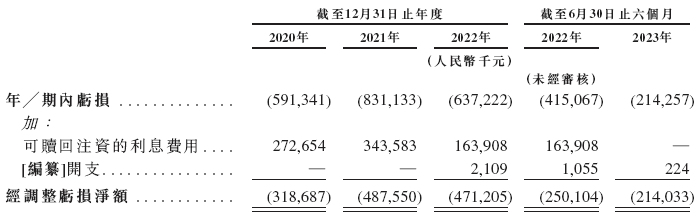 财务数据显示,在过去的2020年、2021年、2022年和2023年上半年,美中嘉和的营业收入分别为1.66亿、4.71亿、4.72亿和2.85亿元人民币,相应的净亏损分别为 5.91亿、8.31亿、6.37亿和2.14亿元人民币;相应的经调整净亏损分别为3.19亿、4.88亿、4.71亿和2.14亿元人民币。