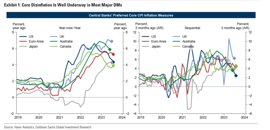 与此同时我们要看到联储对于通胀的黏性也非常看中,不认为通胀会走低,而在其他国家,都已经看到了核心通胀放缓的苗头