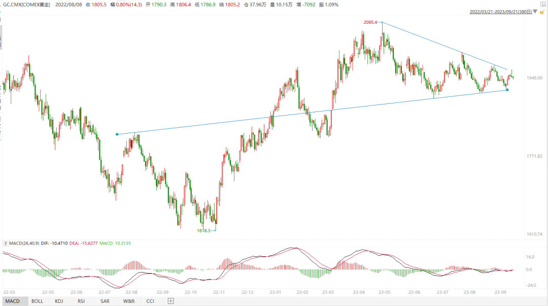 之前有聊过,黄金在一个非常狭窄的区间里面,我完全理解这个纠结