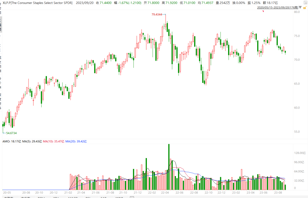 在经济复苏时期,美国的XLP基金,往往都是一条斜线往上的