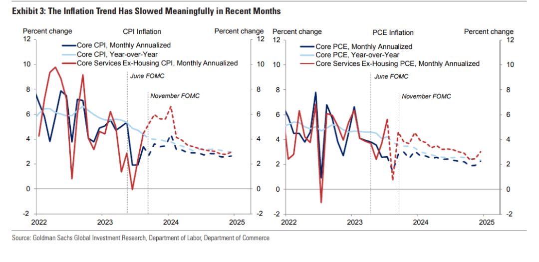 甚至,和美国本土的经济多头,高盛在两天前的预测来说,这个都是偏高的,高盛一直认为美国经济会有一个软着陆,给了美国经济非常不错的预期,即便如此,他们对2024年的经济预测也就是1.3%
