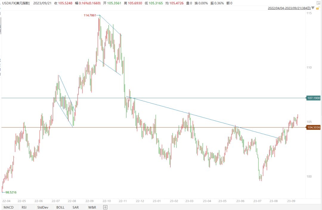美元指数突破了之前104.5的阻力位,下一个阻力位可能是105.8和107,这个不奇怪,欧央行鸽派,联储鹰派,不管经济怎么样,美元指数这一轮反弹我觉得没有任何问题