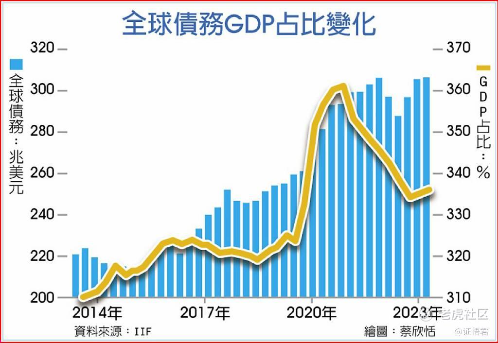 国际金融协会(IIF)的数据显示,全球债务在2023年上半年增加了10万亿美元,过去十年里增加了“惊人的”100万亿美元或48.3%。其中,美国、日本、英国和法国的增幅最大。
