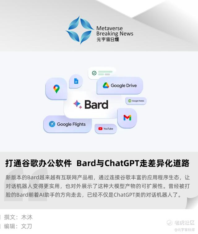 打通谷歌办公软件 Bard与ChatGPT走差异化道路