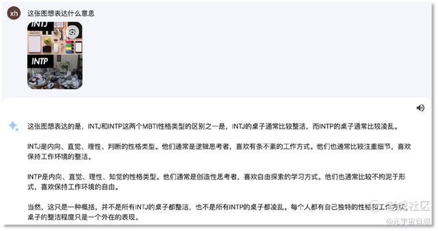 8月再打开Bard,它可以识图了,利用Google智能镜头,用户可以上传图片,这个对话机器人也能读懂网络梗图了,解析的最后甚至还展现了端正的三观。